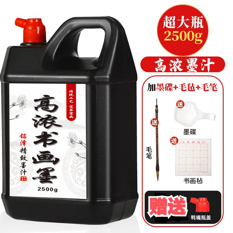 高浓书法墨汁专用大瓶装毛笔练A习毛毡墨水绘画可装裱工地弹线放