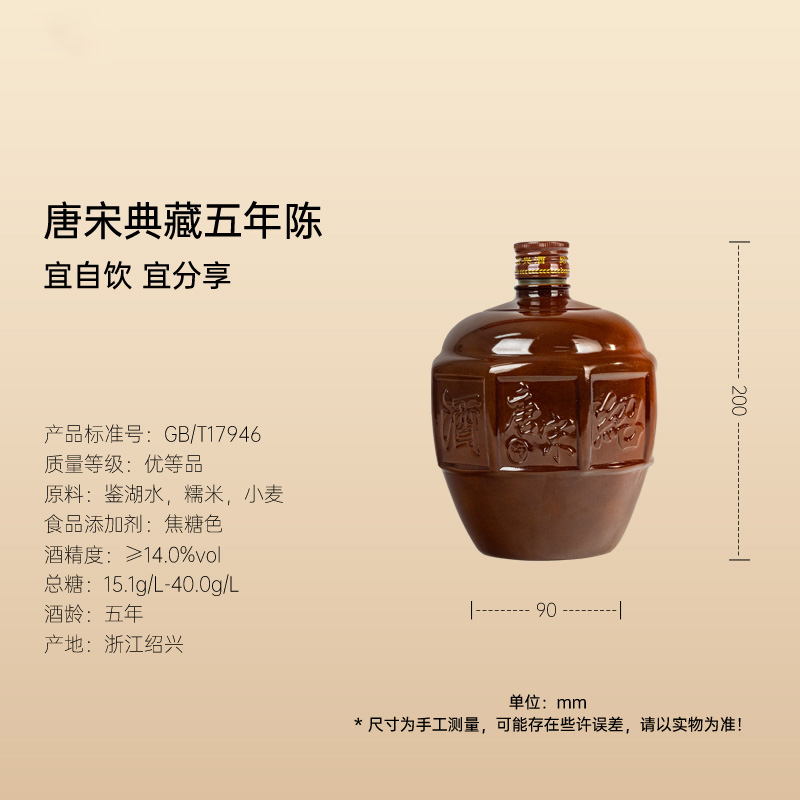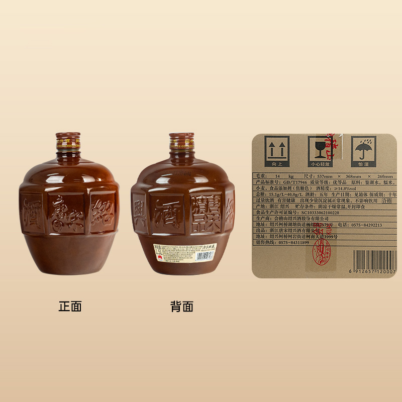 会稽山黄酒绍兴典藏五年花雕酒加饭酒正宗半干老酒1.5L*6整箱坛装