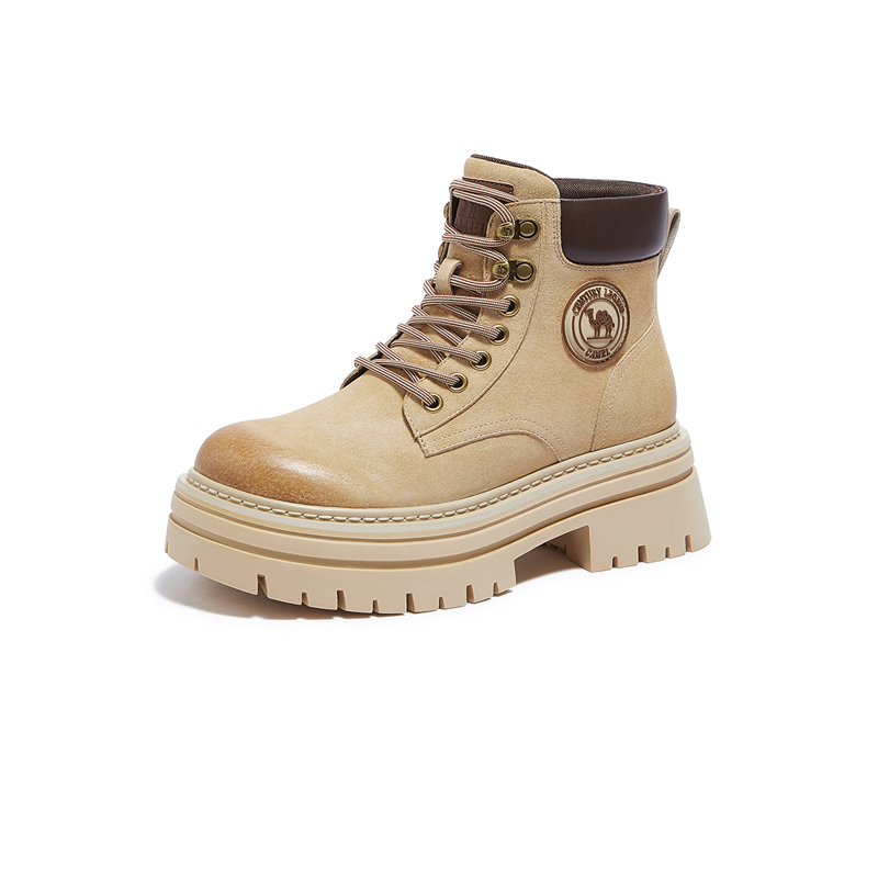 骆驼女鞋2025秋季新款厚底马丁靴女款户外大黄靴增高英伦工装靴子