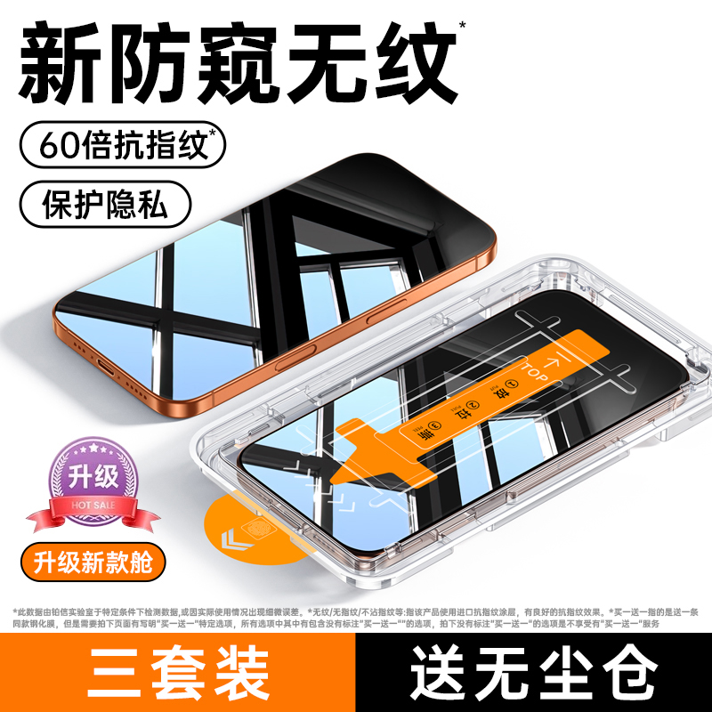 图拉斯防窥小黑膜适用苹果17防窥iPhone16ProMax钢化膜15贴膜14Pro手机14防偷窥13全屏11防摔p官保护ip屏幕12