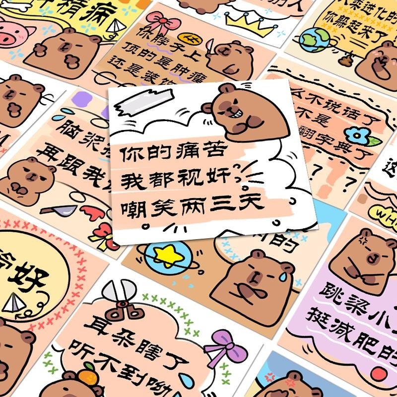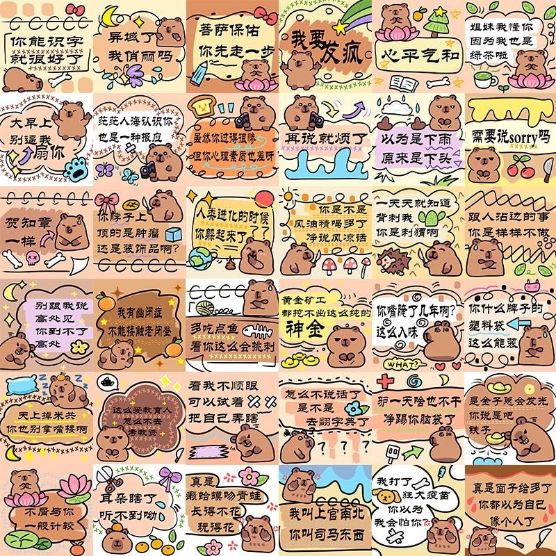 卡皮巴拉表情包贴纸可爱ins风豚鼠怼人语录沙雕搞笑精神状态贴画