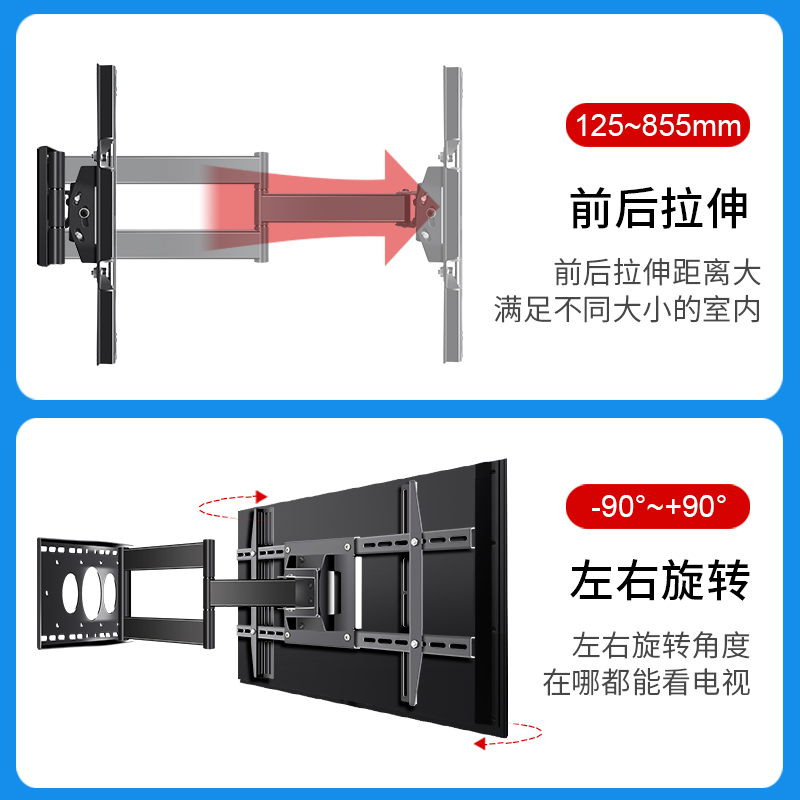 电视机伸缩挂架90度折叠旋转壁挂支架适用小米海信创维65/75英寸