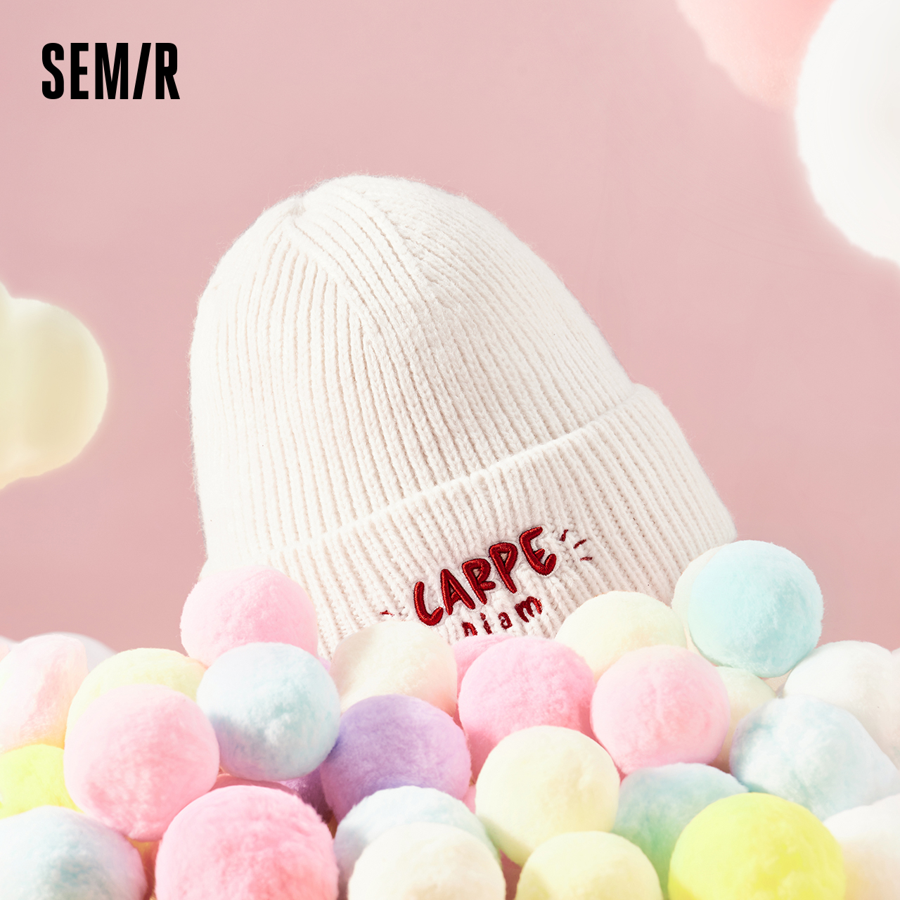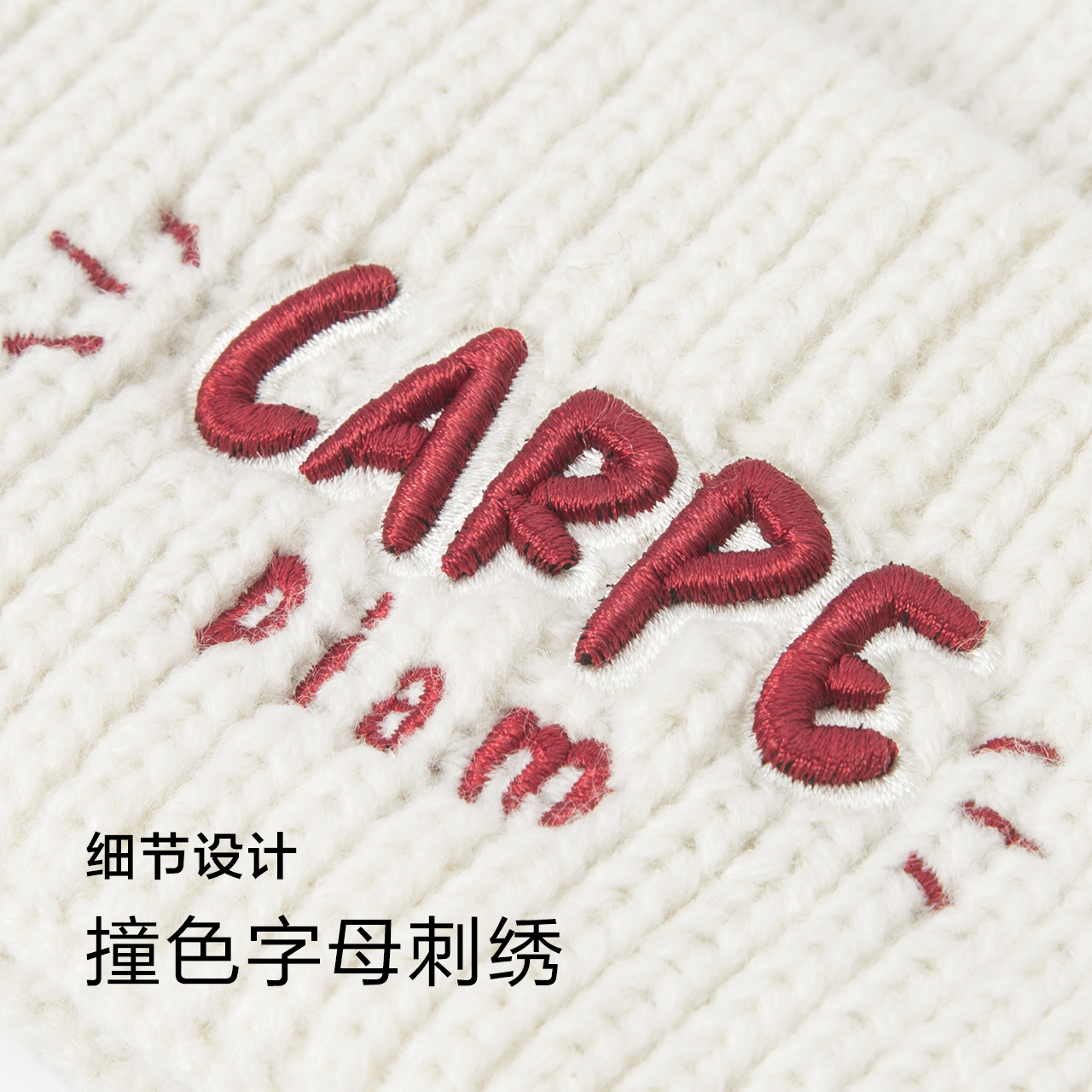 森马针织帽女2024新款保暖毛线帽秋冬撞色刺绣圣诞氛围感帽子复古