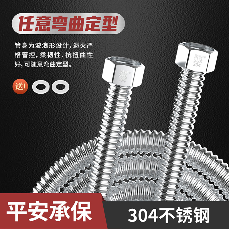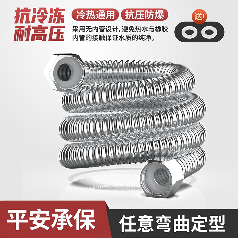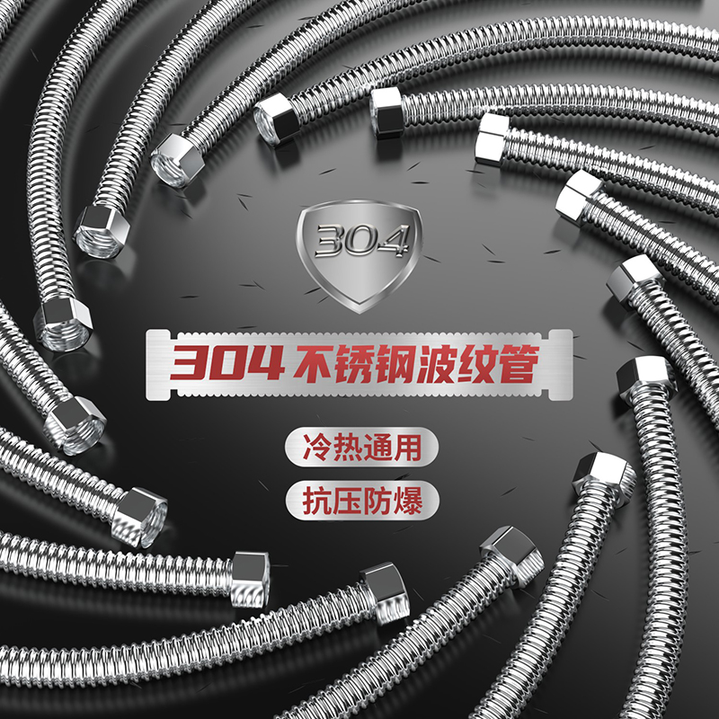 4分6分1寸防爆304不锈钢波纹管高压冷热软管金属水管热水器马桶