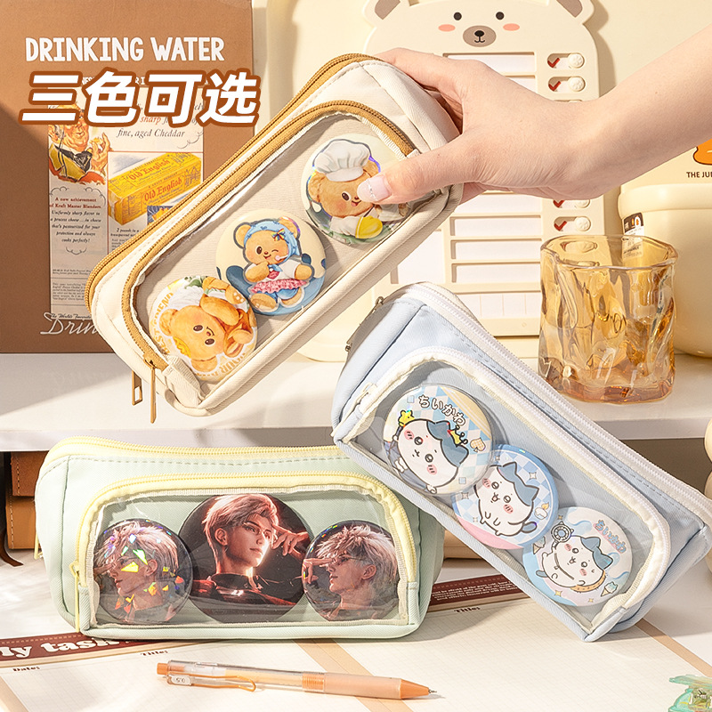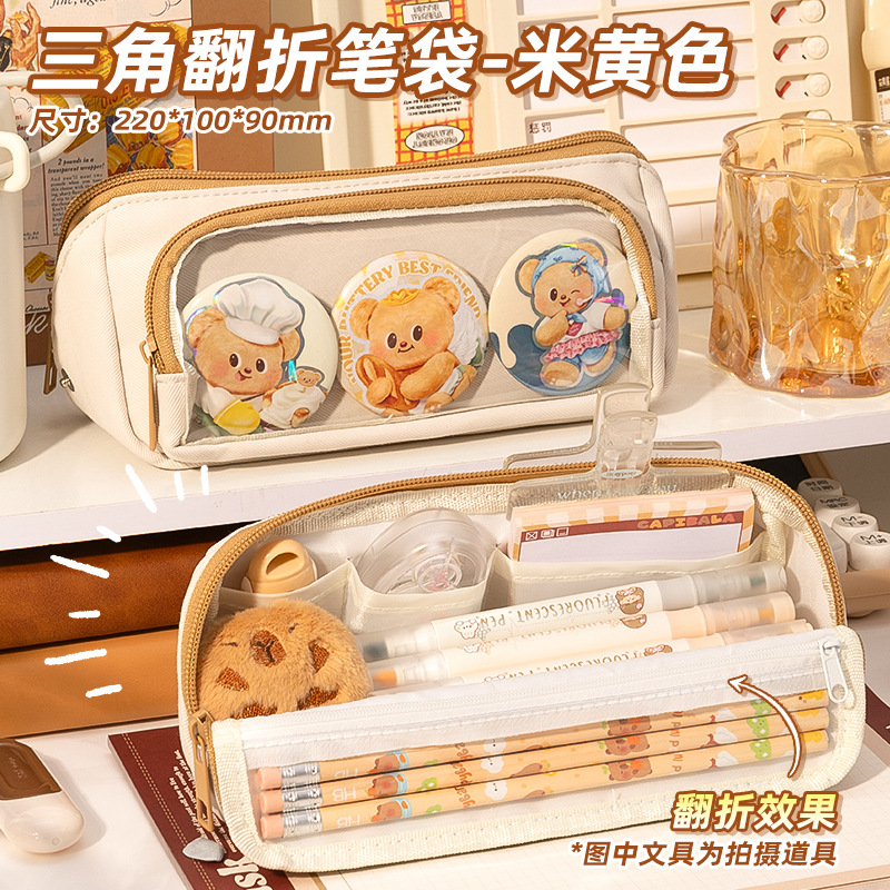 黄油小熊笔袋痛包文具袋三角可立大容量多功能文具盒高颜值透明