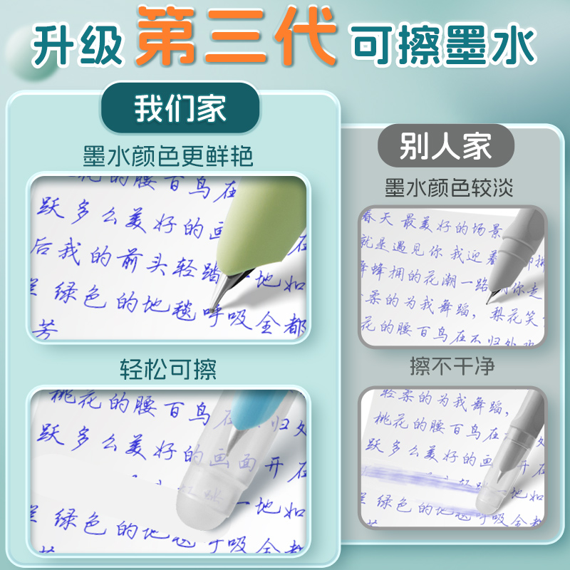 热敏可擦按动钢笔三年级小学生书法练字专用热可擦四年级学生男生女生刚笔可换墨囊按动式暗尖0.38可檫五年级