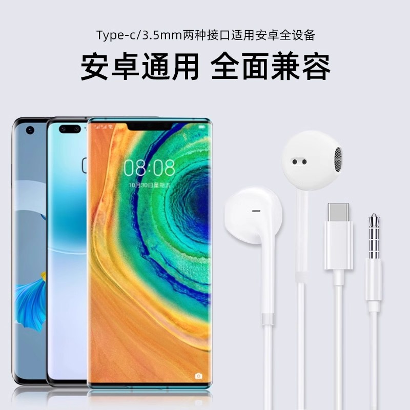 原装正品耳机适用于华为type-c接口有线入耳式p50/40荣耀手机然臣