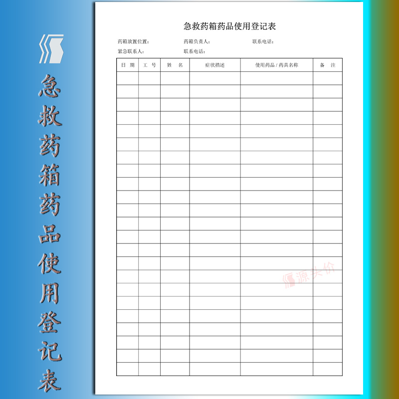 急救药箱药品使用登记表抢救施救110备必清单管理明细公司工厂本