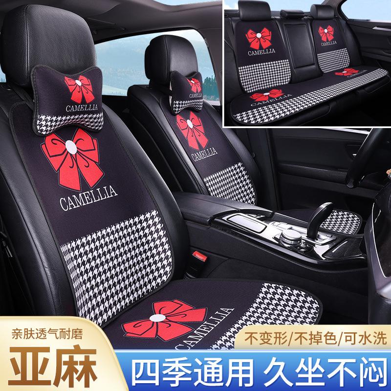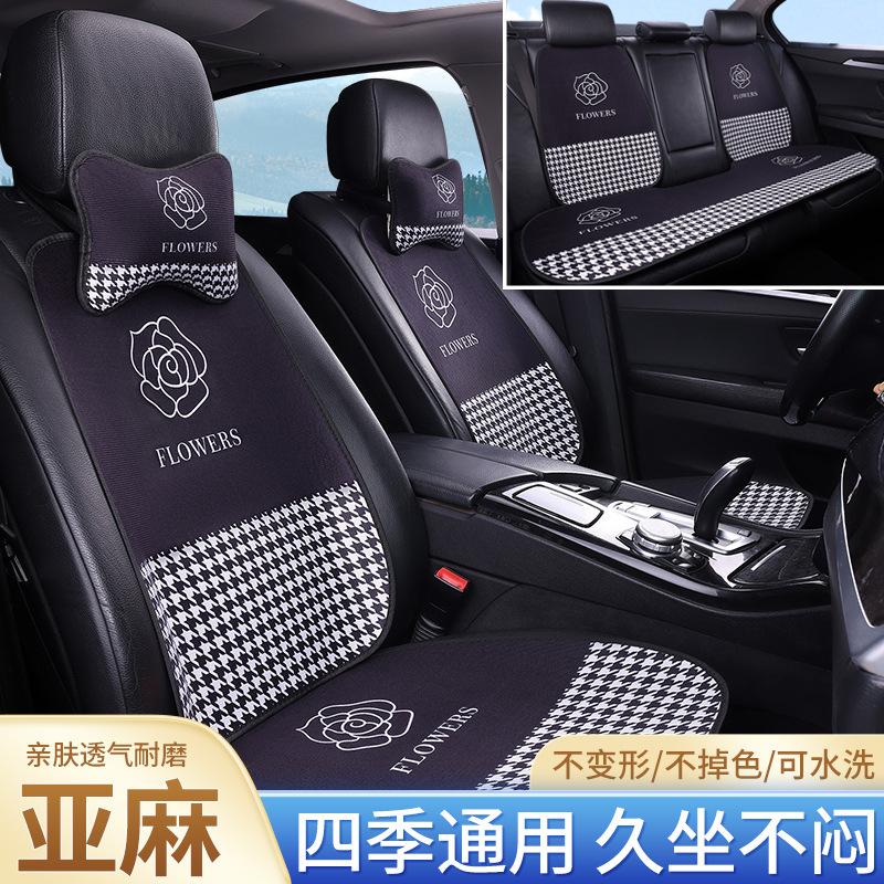 汽车坐垫分体垫子亚麻国潮风格印花印图四季通用车型装饰一件代发