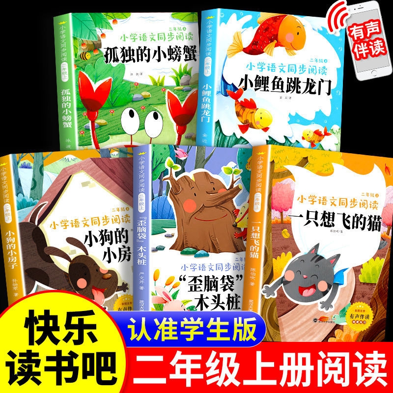快乐读书吧二年级上册下册必读课外书5册彩图正版神笔马良七色花愿望的实现一起长大的玩具大头儿子和小头爸爸小鲤鱼阅读故事温馨