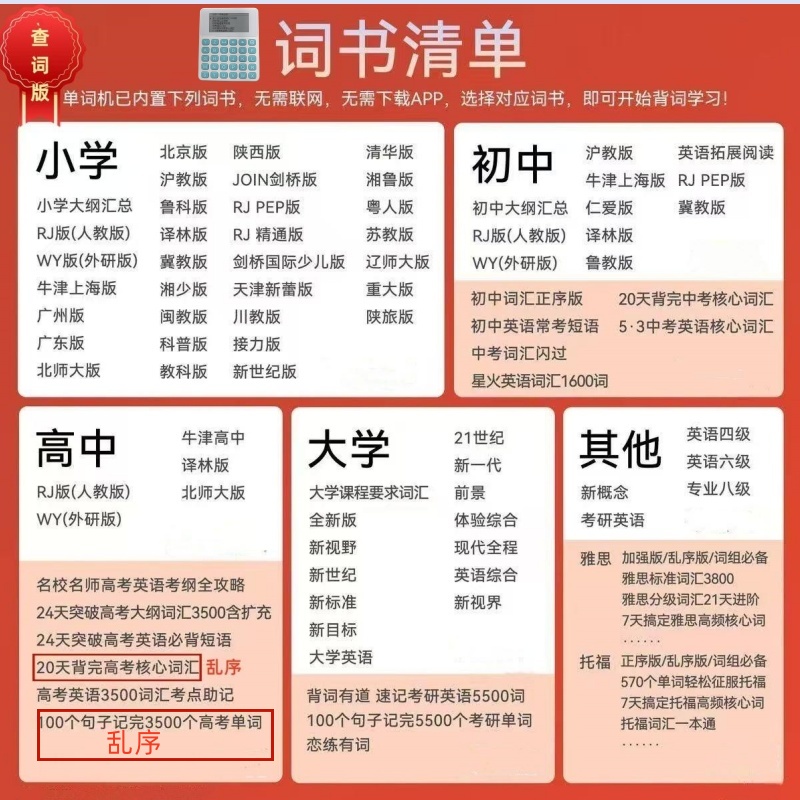 优伯士单词机墨水屏离线记背口袋英语电子单词卡小初高中3500大学