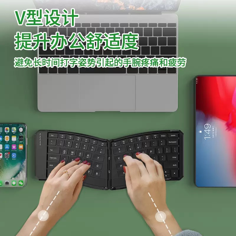 充电2025新款两折V型人体工学折叠无线蓝牙键盘异形轻薄便携适用于mac笔记本苹果手机ipad平板电脑三通道通用