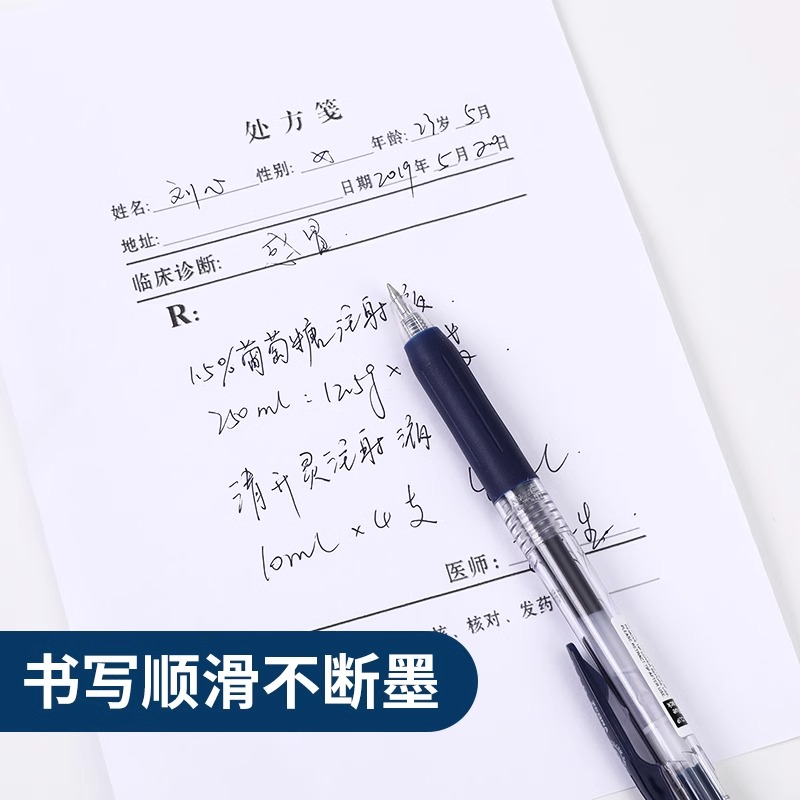 名马按动中性笔水笔碳素黑签字笔学生用水性蓝笔商务办公考试刷题老师专用红笔圆珠笔墨蓝笔芯医生处方笔黑笔