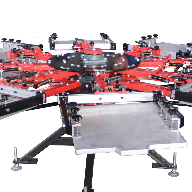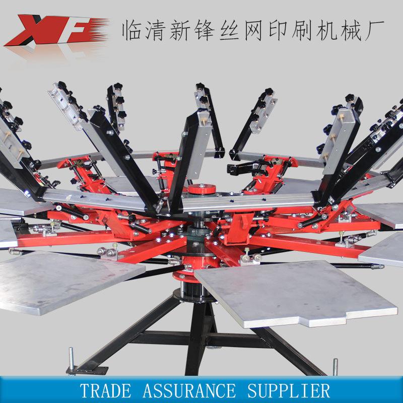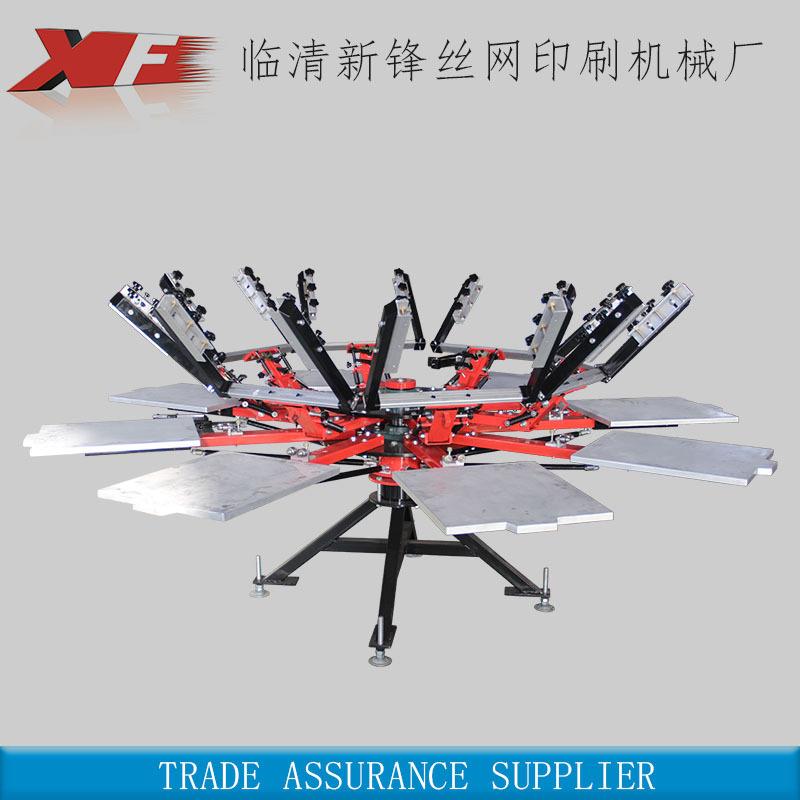 临清新锋机械厂手动轮转印花机平面布料8色双网夹丝网印刷机