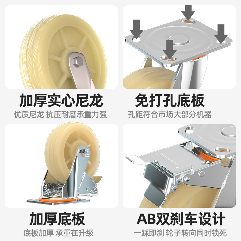 万向轮轮子尼龙轮定转向工业重型小推车板车拉车脚轮承重轱辘4568