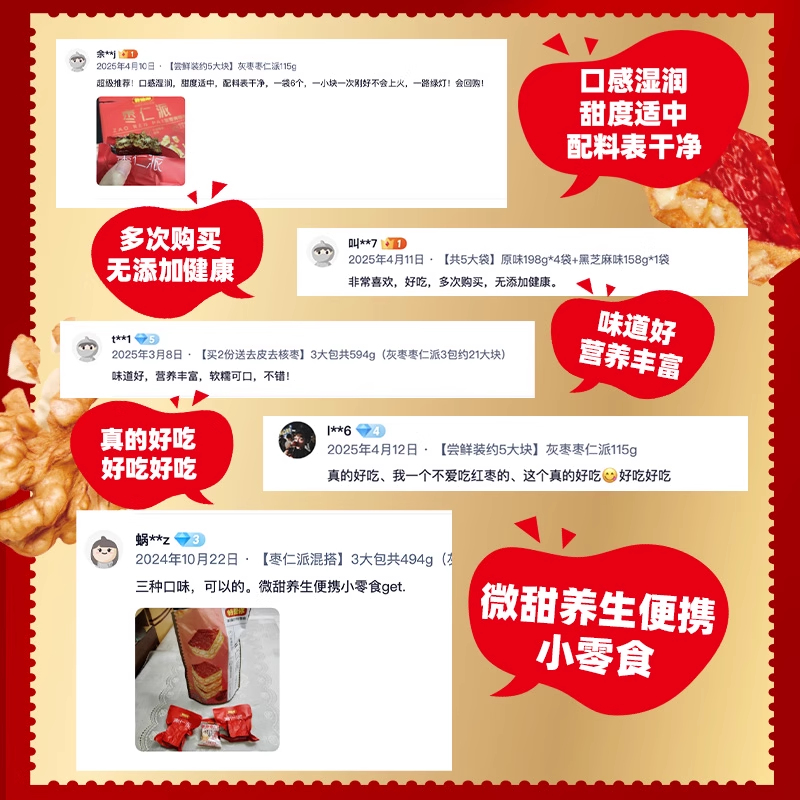 好想你枣仁派红枣夹核桃仁灰枣黑金枣休闲零食吃红小派无花果健康