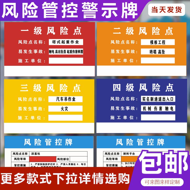 工地风险点管控警示牌一级二级三级四级风险点标识牌施工工地警示牌配电箱风险管控牌告知牌脚手架安全标识牌