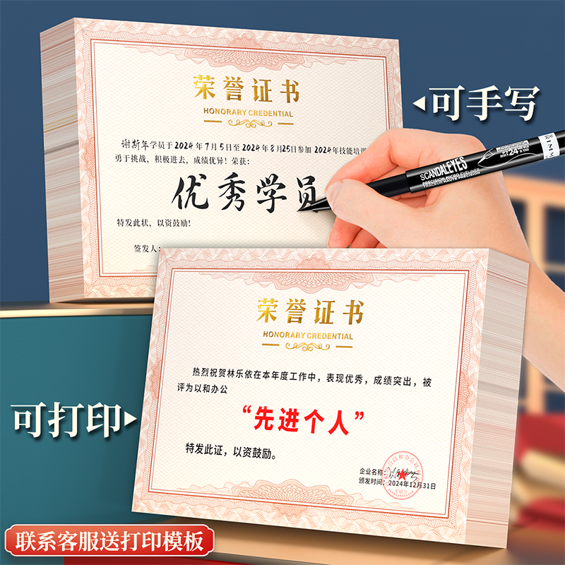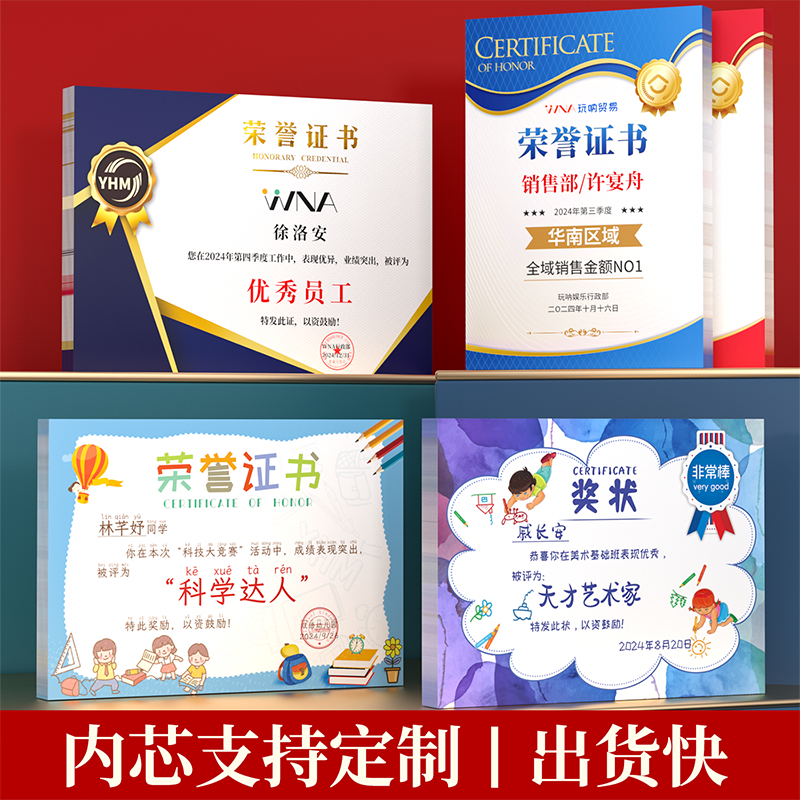 荣誉证书内芯定制征书奖状纸内页学生证书封套制作a4打印纸证书纸制作志愿者培训通用空白捐赠高级感获奖证书