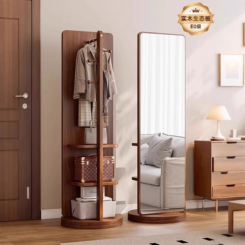 实木旋转全身镜落地镜家用卧室可移动试衣镜挂衣架一体镜子穿衣镜