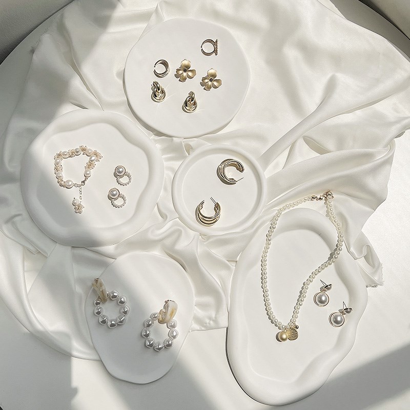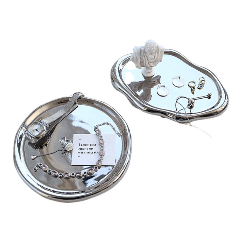 现货速发哑光饰品银色盘子拍照道具装饰背景高级氛围布置异形托盘
