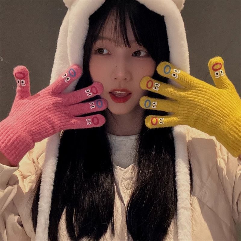 手套秋冬季女保暖学生可爱加绒加厚骑车五指防寒不可触屏棉手套