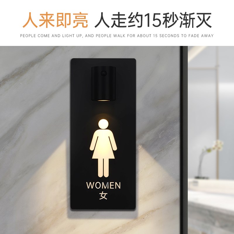 智能感应充电亚克力洗手间发光门牌定制磁吸悬挂人来即亮店铺WC指