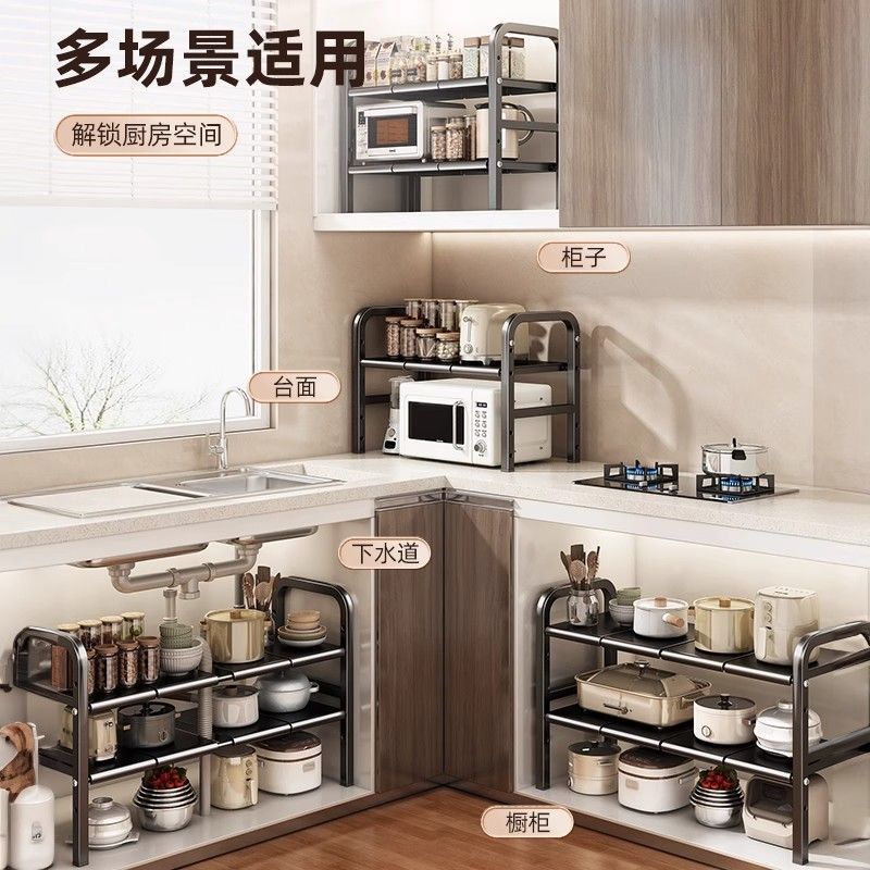 厨房置物架家用多功能锅具收纳架多层橱柜下水槽灶台分层放锅架子