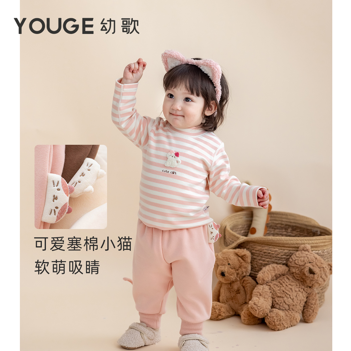 YOUGE 幼歌婴幼儿冬季趣味动物卡通猫咪卫裤舒软加绒针织厚束脚裤