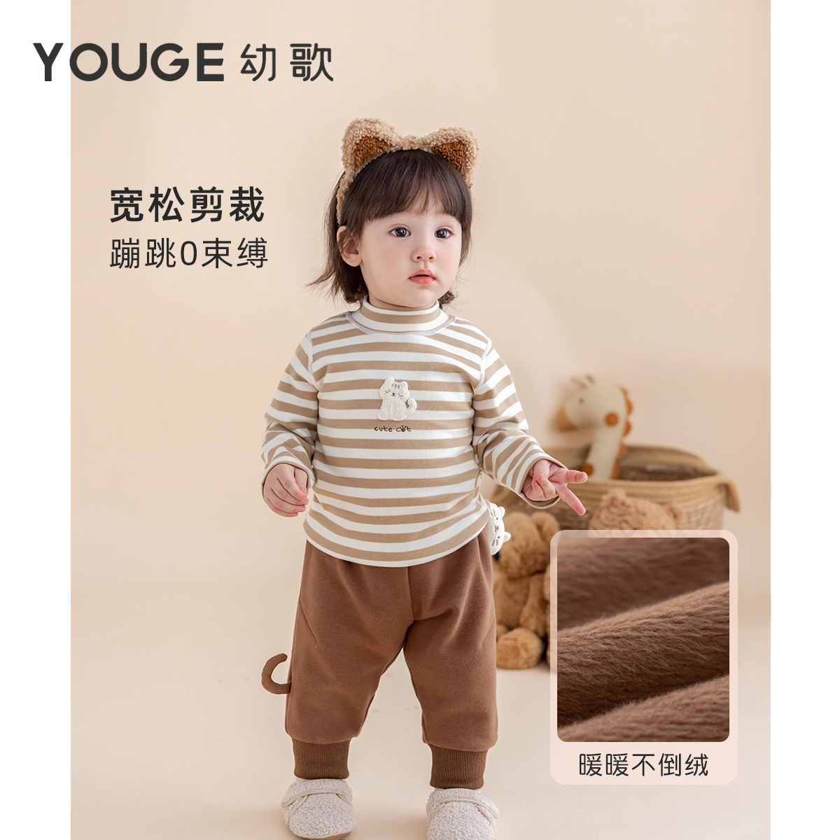 YOUGE幼歌 婴幼儿2025秋季新款柔软打底裤宝宝宽松大pp裤撞色裤子