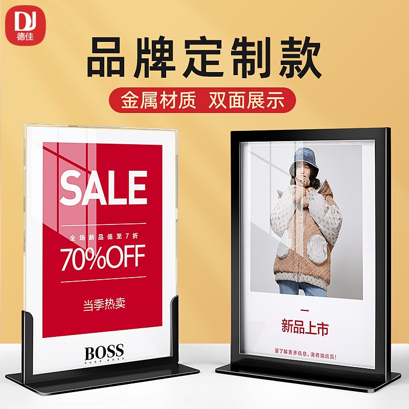 a4台卡展示牌立牌亚克力桌牌金属定制桌面广告牌高档价目表摆台签