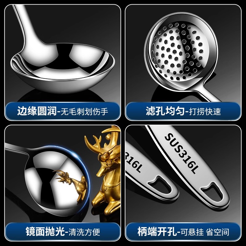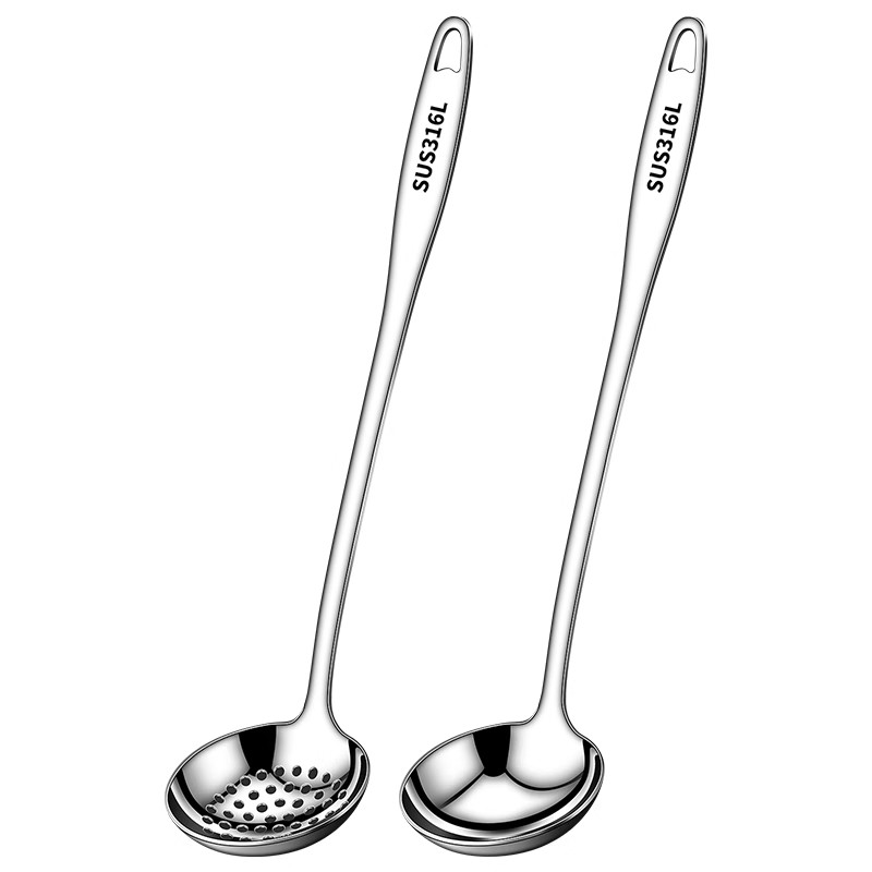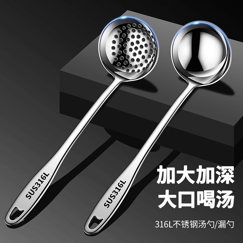 316L不锈钢勺子家用长柄火锅勺防烫盛汤勺漏勺套装大号款加厚加长