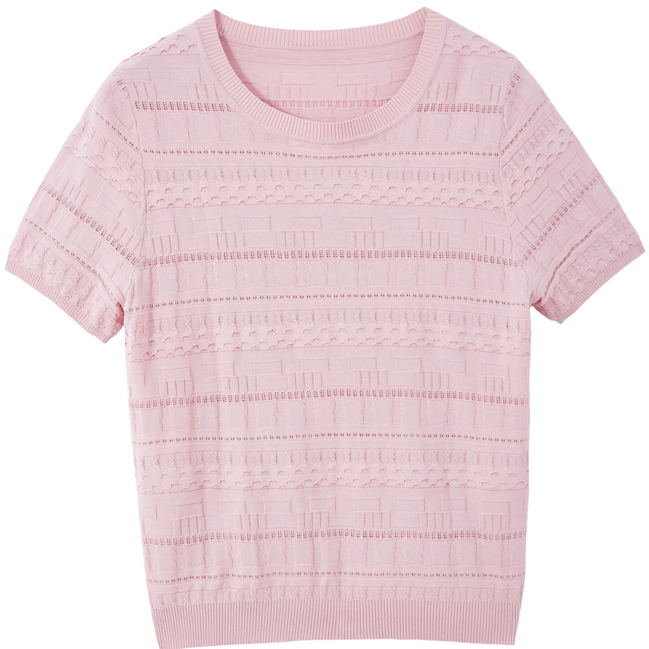 RPB BRAND韩系通勤绞花纹理百搭圆领针织刺绣毛衣短袖夏女款T恤