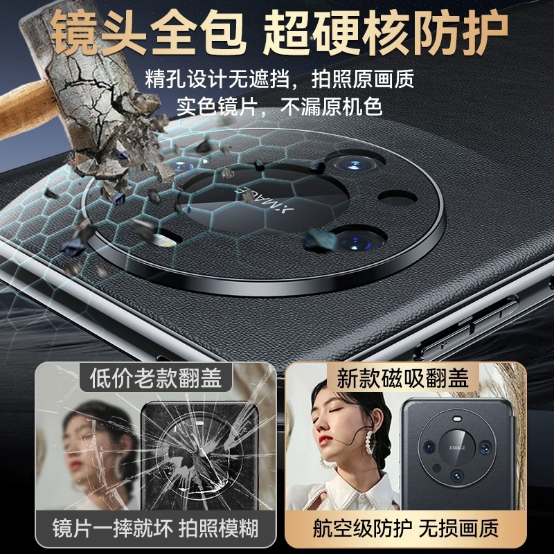 适用华为mate70手机壳翻盖真皮mate60Pro新款磁吸智能mate70Pro优享版保护套60RS精孔镜头全包防摔轻奢皮纹