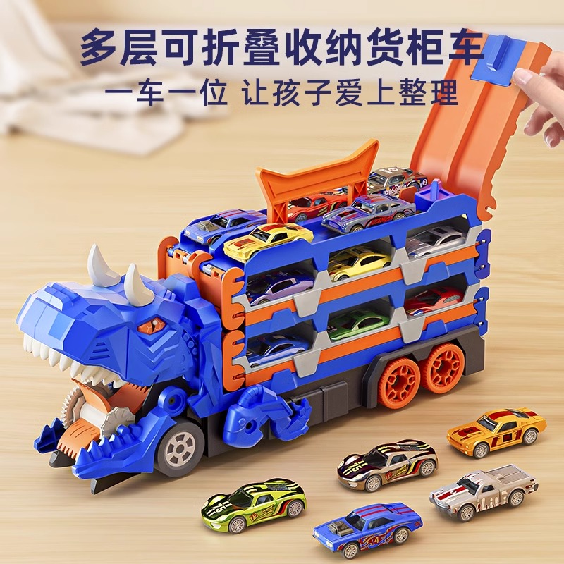 玩具车儿童恐龙6变形滑行弹射合金小汽车男孩3霸王龙吞食轨道小车