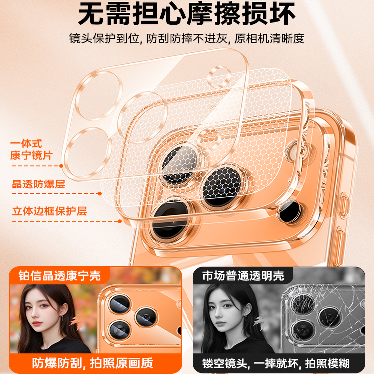 【顶配康宁】铂信适用苹果17promax手机壳透明iphone16手机套Air抗发黄全包防摔保护套15pro超薄简约男女高级