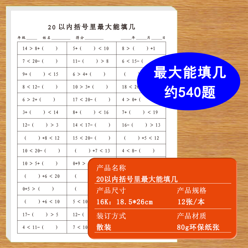 20以内100以内最大填几最小填几专项练习纸幼儿小学大于号小于号