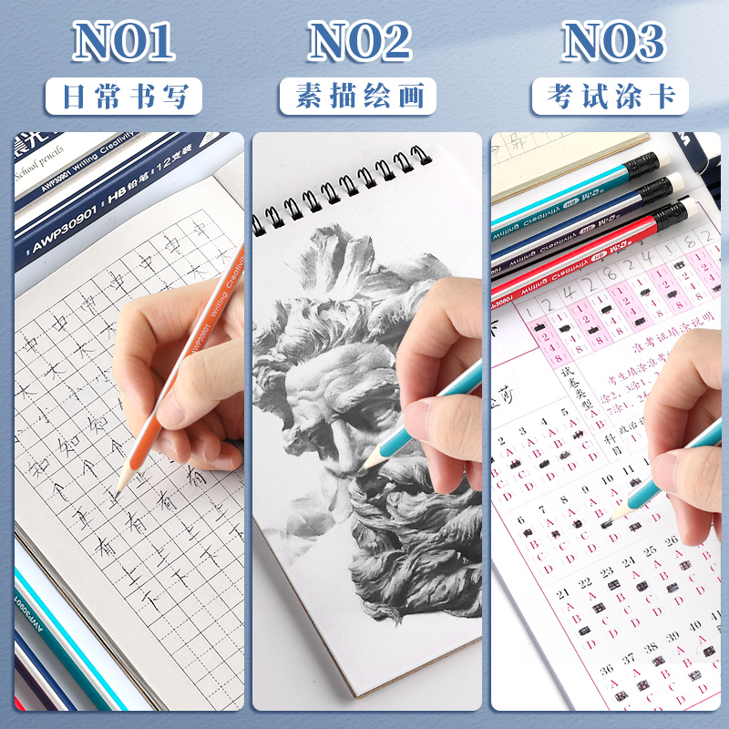 晨光文具洞洞铅笔小学生2BHB铅笔练字考试专用涂卡正品无毒