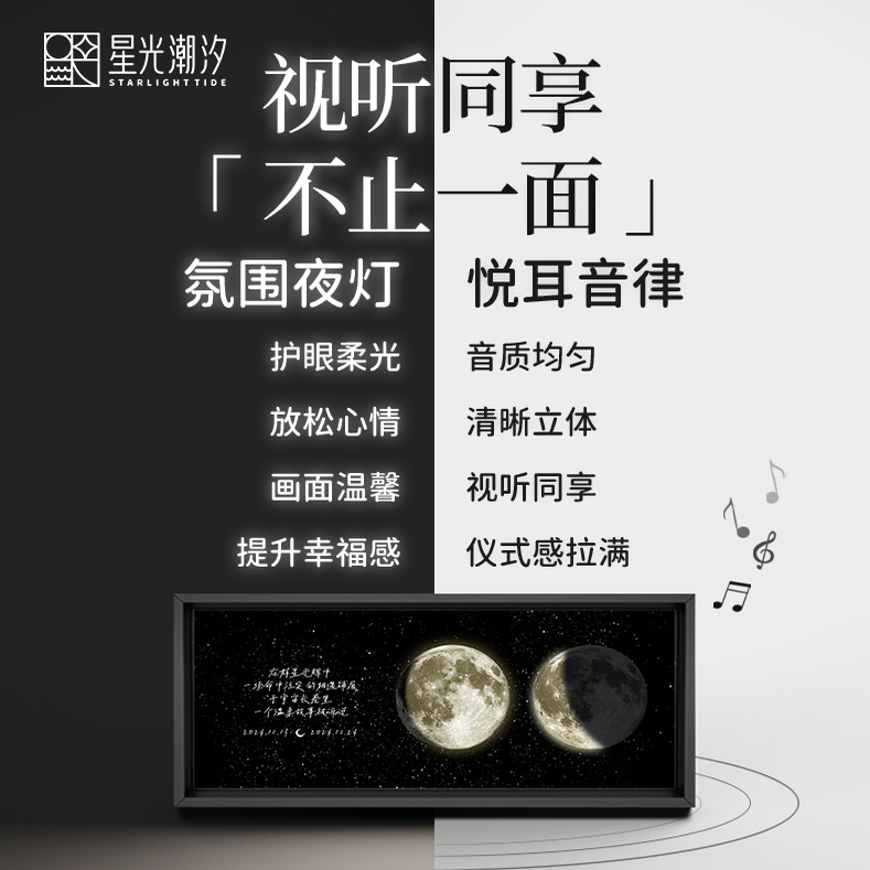 星光潮汐定制月亮蓝牙音响相框桌面氛围灯光画装饰画摆件生日礼物