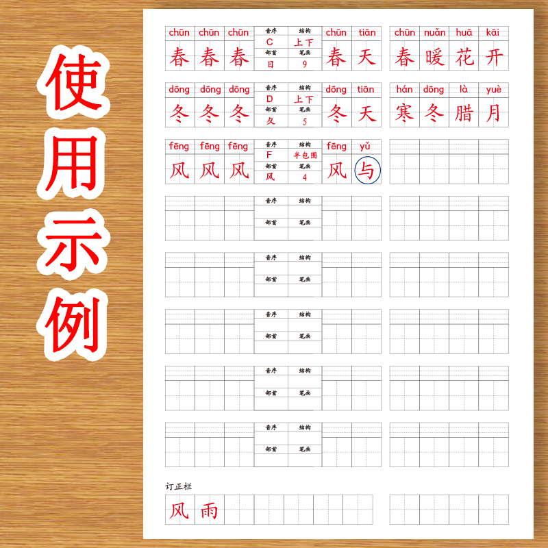 三字两词本小学生语文课文生字拼音音序结构部首笔画听写默写四字成语组词等复习预习听写本