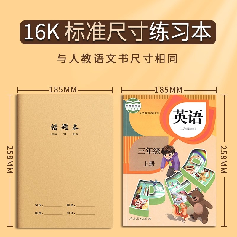 16K牛皮错题本A5小学学霸作业本幼儿园小学生专用初中生三年级一年级全国标准二年级小学生批发统一作业本