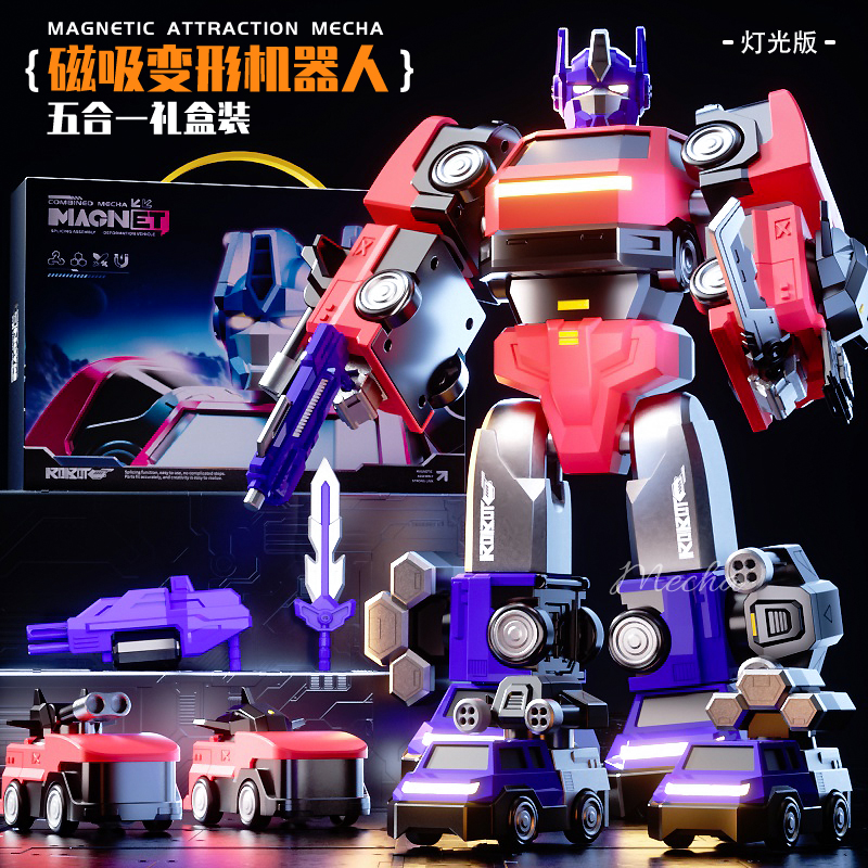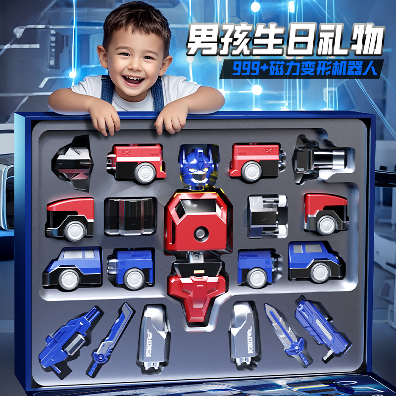 超大号磁力拼装变形机器人金刚男孩磁吸拼装积木汽车玩具礼盒电动