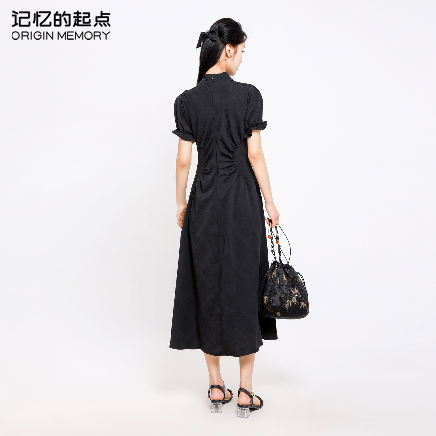 记忆的起点连衣裙2024夏季新款轻中式收腰气质A字长裙子68AX85165