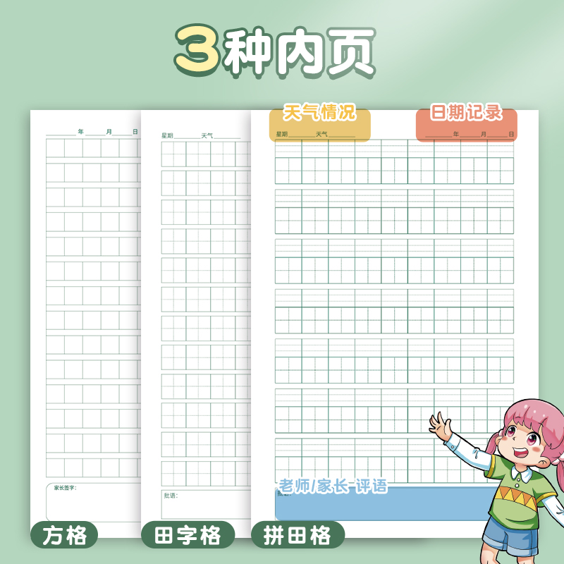 日记本小学生方格本一年级作文本二年级写话本田字格周记本三年级语文作业本男孩女孩专用拼音田字格笔记本子