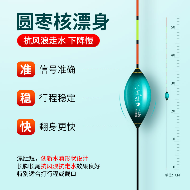 小凤仙枣核型行程浮漂高灵敏醒目鲫鱼漂野钓抗风浪走水专用浮漂