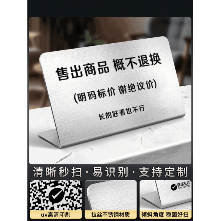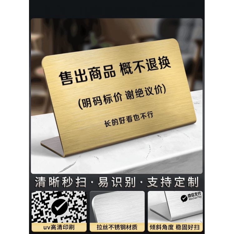 概不赊账温馨提示牌谢绝还价标识立牌商场超市女装服装店个性创意请保管好您的随身物品男士止步标牌摆台定制