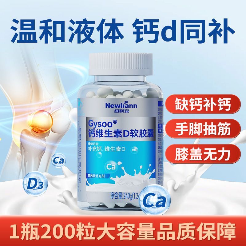 钙维生素D软胶囊200粒男性成年维生素d3成人女性中老年补钙液体钙
