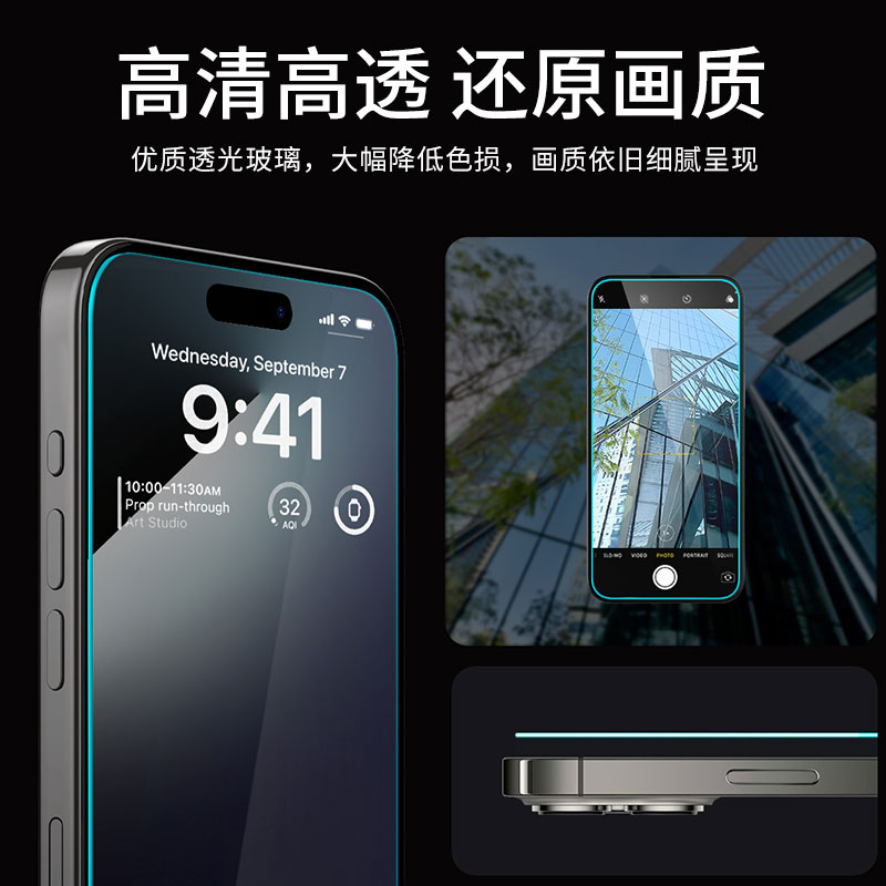 绿联适用苹果iPhone17promax钢化膜15/16Pro手机膜13新款xr全屏7/8防窥11防摔12mini屏幕Xs保护Air贴膜14plus