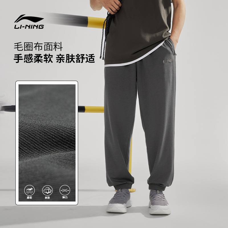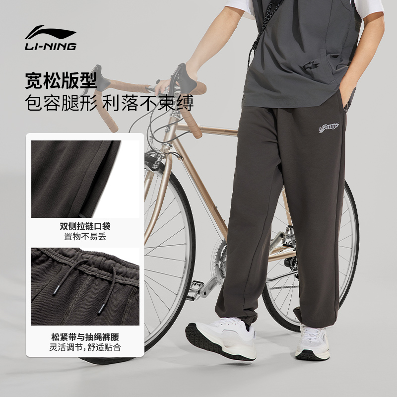 李宁卫裤灰色裤子秋季透气男士休闲裤宽松刺绣针织长裤运动裤