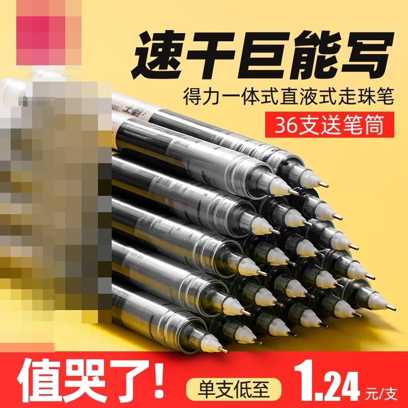 得力直液式走珠笔速干大容量直液笔0.5黑色中性笔学生用速干刷题笔水性笔直液笔圆珠笔商务办公简约风笔杆