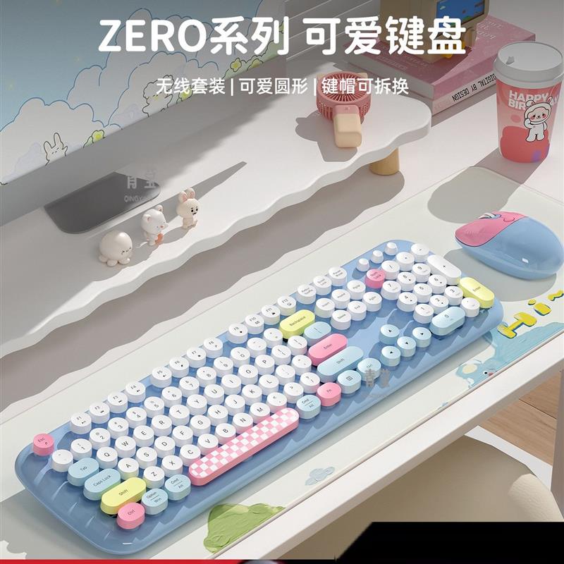 摩天手卡通可爱无线键盘鼠标猫咪套装有线女生办公家用电脑高